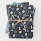 Das chic-glänzende Packpapier zeigt Schlangen, mystische Kristalle, Tränke, Zauberbücher, Kerzen, Gläser, Schädel, Tarot-Karten und Tränke auf kohlefreiem Hintergrund mit zwei weiteren farblich abgestimmten Mustern.