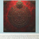 An ornate compass rose glows in gold against a deep crimson backdrop, surrounded by arcane symbols and cryptic inscriptions.