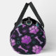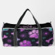 This unique duffle bag features a colorful pattern of glowing purple and pink paw prints, bones, and teal stars and heart design outlines, all set against a dark, cosmic background. It's a stylish pet accessory and versatile travel organizer, perfect for the pet lover with a mystical flair.