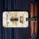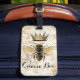 Krönte Biene mit Honigwabenmuster auf weißem, bedrücktem Hintergrund.