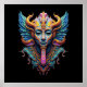 Make a bold statement with this stunning psychedelic deity mask design. Featuring sweeping golden horns, great feathered wings, and an ornately decorated face in rich teal, cobalt, violet and gold, this eye-catching print is packed with intricate detail that rewards a closer look every time.