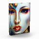 Die künstlerische KI erzeugte eine mysteriöse, surreal ätherische schöne Frau mit goldenen Akzenten und roten Lippen.