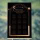 Mystical Black Gold Sun Moon Stars Astronomie Hochzeitsakrylus Seating Chart weist goldene Sonne, Mond und Sterne mit goldenem Rahmen auf schwarzem Hintergrund auf. Im Rahmen befindet sich der Text "Welcome" in elegantem goldfarbenem Kalligrafieschrift und Ihre individuellen Empfang-Sitzplakatdaten. Personalisieren Sie den Text durch Bearbeiten in den bereitgestellten Textfeldern. Entwickelt für Sie von ©Evco Studio www.zazzle.com/store/evcostudio