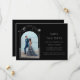 Mystical Chic Black Silver Sun Moon Star Astronomy Celestial Cosmic Space Save The Dates features a silver colored sun, moon and stars frame on an elegant black background. Inside is your favorite photo and your custom save the date information. Personalize by editing the text in the text boxes. Designed for you by ©Evco Studio www.zazzle.com/store/evcostudio