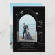 Mystical Black Silver Sun Moon Star Space Save The Dates zeichnet sich durch eine silberne Sonne, Mond und Sterne Rahmen auf einem schwarzen Hintergrund aus. Inside ist Ihr Lieblings-Foto und Ihre persönlichen Save the Date Informationen. Fügen Sie auf der Rückseite ein zusätzliches Foto hinzu. Personalisieren Sie den Text in den Textfeldern, indem Sie ihn bearbeiten. Entworfen für Sie von ©2022 Evco Studio www.zazzle.com/store/evcostudio