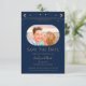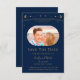 Mystical Blue Gold Sun Moon Star Space Save The Dates zeichnet sich durch eine goldene Sonne, Mond und Sterne aus, die auf einem dunkelmarineblau blauen Hintergrund angeordnet sind. Inside ist Ihr Lieblings-Foto und Ihre persönlichen Save the Date Informationen. Personalisieren Sie den Text in den Textfeldern, indem Sie ihn bearbeiten. Entworfen für Sie von ©2022 Evco Studio www.zazzle.com/store/evcostudio