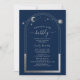 Mystical Blue Silver Sun Moon Stars Astronomie Space Celestial Brunch und Bubbly Bridal Shower Einladungen bieten eine silberne Sonne, Mond und Sterne Rahmen auf einem blauen Hintergrund. Im Inneren finden Sie die Informationen zu Ihrer Brautdusche. Personalisieren Sie den Text in den Textfeldern, indem Sie ihn bearbeiten. Entworfen für Sie von ©2022 Evco Studio www.zazzle.com/store/evcostudio