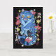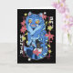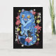 Mystical Blue Tiger Japanese Folk Art Style Karte