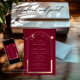Mystical Burgundy Sun Star Moon Astronomy Space Wedding Einladungen mit Sonne, Mond und Sternen mit einem goldenen Rahmen auf bordeauxrotem Hintergrund. Im Inneren finden Sie Ihre persönlichen Informationen zur Hochzeitseinladung. Personalisieren Sie den Text in den Textfeldern, indem Sie ihn bearbeiten. Entwickelt für Sie von ©Evco Studio www.zazzle.com/store/evcostudio