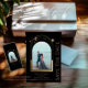 Mystical Chic Black Gold Sun Moon Star Space Save The Dates verfügt über eine goldene Sonne, Mond und Sterne Rahmen auf einem schwarzen Hintergrund. Inside ist Ihr Lieblings-Foto und Ihre persönlichen Save the Date Informationen. Fügen Sie auf der Rückseite ein zusätzliches Foto hinzu. Personalisieren Sie den Text in den Textfeldern, indem Sie ihn bearbeiten. Entworfen für Sie von ©2022 Evco Studio www.zazzle.com/store/evcostudio
