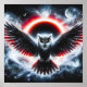 Majestic owl spreading its wings beneath a glowing celestial eclipse.
