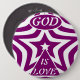 Add a touch of luxury and deep color to your gear with this Colossal Round Button. The rich, jewel-toned Mystical Deep Purple design, centered on the "God Is Love" message, creates an elegant and eye-catching accessory. This oversized pin is a sophisticated way to share your faith. Perfect for adding a bold splash of rich color to coats, backpacks, or denim jackets.