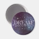 Magnet mit den inspirierend Worten "Traum, stellen Sie sich vor, glauben, schaffen" in pastellvioletten Hauptstädte Buchstaben Set gegen einen sternenstarken Nachthimmel inmitten von staubigen violetten und blauen Nebel Weltraum Wolken. Mystisch und magisch wie das geheimnisvolle Reich der Träume. Verwenden Sie die Textvorlage, um einen Namen hinzuzufügen, Wörter zu stärken oder ein inspirierendes Zitat hinzuzufügen. ♡ Idyllfire
