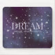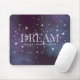 Mousepad mit den inspirierend Worten "Traum, stellen Sie sich vor, glauben, schaffen" in pastellvioletten Hauptstädte Buchstaben Set gegen einen sternigen Nachthimmel inmitten staubiger violetter und blauer Nebel Weltraum Wolken. Mystisch und magisch wie das geheimnisvolle Reich der Träume. Verwenden Sie die Textvorlage, um einen Namen hinzuzufügen, Wörter zu stärken oder ein inspirierendes Zitat hinzuzufügen. ♡ Idyllfire