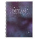 Notebook mit den inspirierend Worten "Traum, stellen Sie sich vor, glauben, schaffen" in pastellvioletten Hauptstadt Buchstaben Set gegen einen sternenstarken Nachthimmel inmitten von staubigen violetten und blauen Nebel Weltraum Wolken. Mystisch und magisch wie das geheimnisvolle Reich der Träume. Verwenden Sie die Textvorlage, um einen Namen hinzuzufügen, Wörter zu stärken oder ein inspirierendes Zitat hinzuzufügen. ♡ Idyllfire