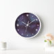 Dreame Galaxie Wanduhr mit staubigen violetten und blauen Nebel Weltraum Wolken in einem dunklen magentafarbenen Himmel mit funkelnden Sternen. Große funkelnde Sterne markieren die Zahlenpositionen. Mystisch und magisch wie das Himmelsreich der Träume. ♡ Idyllfire