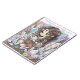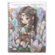 A delightful and detailed chibi-style illustration featuring a sweet Bohemian girl surrounded by an abundance of shimmering pastel quartz crystals and beautiful flowers. She is adorned with a floral crown, braids, and a delicate headpiece, and is gently holding a large, polished crystal. Her outfit includes earthy tones and traditional patterns, sitting on a fringed Persian rug. With its soft, watercolor-like background and kawaii charm, this design is perfect for anyone who loves crystals, nature, fantasy, and a carefree boho aesthetic. A truly enchanting design for custom gifts, stationery, or apparel!