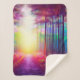 Zauberhafter, farbenvoller Wald mit einem Pfad, der zum Licht führt. Erstellt mit KI-Software.