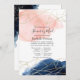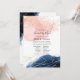 Trendiges Baby oder Brautparty mit Langstreckenbrille oder E-Mail-Einladung, mit marineblau und rot rosa Aquarelllackierung und goldenem geometrischem Rahmen.
