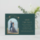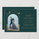Mystical Green Gold Sun Moon Star Raumastronomie Kosmische Galaxie Himmelsrettung Die Daten verfügen über eine goldene Sonne, Mond und Sterne, die auf einem grünen Hintergrund angeordnet sind. Inside ist Ihr Lieblings-Foto und Ihre persönlichen Save the Date Informationen. Personalisieren Sie den Text in den Textfeldern, indem Sie ihn bearbeiten. Entwickelt für Sie von ©Evco Studio www.zazzle.com/store/evcostudio