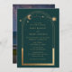 Mystical Green Gold Sun Moon Stars Foto Wedding Einladung
