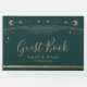 Mystical Green Gold Sun Moon Stars Hochzeit Gästebuch