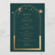 Mystical Green Gold Sun Moon Stars Hochzeit Menükarte