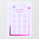 Mystical Lavender Pink Sun Moon Stars Astronomie Himmelskosmische Galaxie Weltraum Hochzeitsdiagramm Fenster Klammer zeigt eine rosa und lila Sonne, Mond und Sterne Rahmen auf einem pastellfarbenen Lavendel Hintergrund. Im Rahmen befindet sich der Text "Welcome" in elegantem goldfarbenem Kalligrafieschrift und Ihre individuellen Empfang-Sitzplakatdaten. Personalisieren Sie den Text durch Bearbeiten in den bereitgestellten Textfeldern. Entwickelt für Sie von ©Evco Studio www.zazzle.com/store/evcostudio