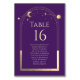 Mystical Lila Gold Sun Moon Stars Hochzeit Tischnummer