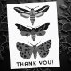 Mystical Magical Moths Black and White DANKE Postkarte