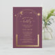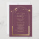 Mystical Plum Gold Sun Moon Stars Astronomie Space Celestial Brunch und Bubbly Bridal Shower Einladungen verfügen über eine goldene Sonne, Mond und Sterne auf einem Pflaumenuntergrund. Im Inneren finden Sie die Informationen zu Ihrer Brautdusche. Personalisieren Sie den Text in den Textfeldern, indem Sie ihn bearbeiten. Entworfen für Sie von ©2022 Evco Studio www.zazzle.com/store/evcostudio