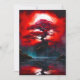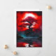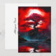 Dramatic fantasy landscape with a glowing crimson tree standing beneath a luminous full moon.