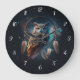 Mystical Space Owl with Dreamcatcher Art Große Wanduhr