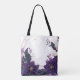 Eine atemberaubende Blumenillustrierung tiefvioletter und sanfter Blütenblüten, die mit zarten Goldakzenten verwoben ist und eine Aura der Verzauberung und Eleganz schafft.