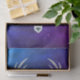 Diese Papiertaschentücher haben einen weißen mystischen Hirschkopf mit großen Geweihen, blauen Augen und eine Krone von drei hübschen blauen Rose auf dem Kopf auf einem Himmelshintergrund von Blues und Purpel mit winzigen weißen Sternen.