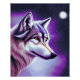 Dies ist ein wunderschönes Plakat für einen Wolfsliebhaber, das eine Darstellung eines mystischen Wolfsprofils in Weiß und lila und blauen Tönen zeigt.