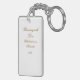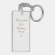 The reverse side offers a minimalist contrast: a clean white background featuring an elegant script in a refined gold-toned hue. The text, signature, and year can be easily customized, making this keyring a truly unique and personalized gift.