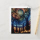 Mystische ätherische Kunst mit Bäumen und nächtlic Postkarte