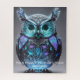 Ein atemberaubendes Kunstwerk mit einer majestätischen Eule mit blauen Federn, die mit ätherischem Licht glühen. Die durchdringenden blauen Augen der Eule fesseln mit Weisheit und Geheimnis. Intrikate Muster schmücken den Absturz, beleuchtet durch magisch leuchtende Akzente. Ideal für Naturliebhaber und Fantasy-Kunstliebhaber. Ideal für Rätselfreunde, die eine visuell bezaubernde Herausforderung suchen. Personalisieren Sie es mit einer liebevollen Nachricht oder verlass leer.