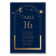 Mystische Chic Blue Gold Sun Moon Astronomie Hochz Tischnummer