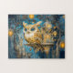 Illustration eines Steampunkuhs in einer magischen Baumburg in der Nacht. Whimsikale und detaillierte Kunstwerke in märchenhaftem, inspiriertem Stil.
