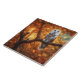 Eine schöne Eule sitzt in einem Baum mit fallendem Laub und Kerzen mit Flammen. Ein hübsches mystisches Naturbild.