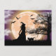 Mystische Hexe, schwarze Katze, Vollmond Postkarte