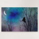 Crow fliegt in einen hübschen mystischen Himmel auf einem schwierigen Level-Puzzle.