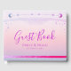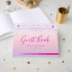 Mystical Sunset Pink Sun Moon Stars Astronomie Celestial Cosmic Space Wedding Guest Books bietet eine rosa und lila Sonne, Mond und Sterne, die auf einem pastellfarbenen Sonnenuntergang am Strand umrahmt sind. Fügen Sie unten Ihre Namen in der modernen lila Schriftzeichen-Typografie hinzu. Entworfen für Sie von ©2022 Evco Studio. Weitere Produkte in dieser Auflistung finden Sie unter www.zazzle.com/store/evcostudio
