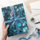 Aquamarine und schwarze Rose Damast Packpapier mit leuchtenden Sternen.