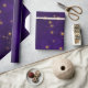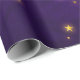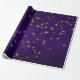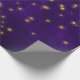Lila und goldbedrücktes Wickelpapier mit leuchtenden goldenen Sternen.
