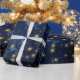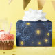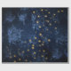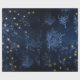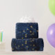 Marineblau-blaugotisches, blumengeschmücktes Papier mit hellen goldenen Sternen.