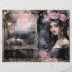Mystische Viktorianische Lady Balcony Pink Junk Journal Page Mit verschiedenen Kunstwerken auf jeder Seite, Vintagen Stil, Damen und Blume in Mondlicht Blues. Für Ihre Junk Journaling- und Scrapbooking Projekte.