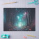 Schöner mystischer Wald mit Halbmond und paranormalem Licht.